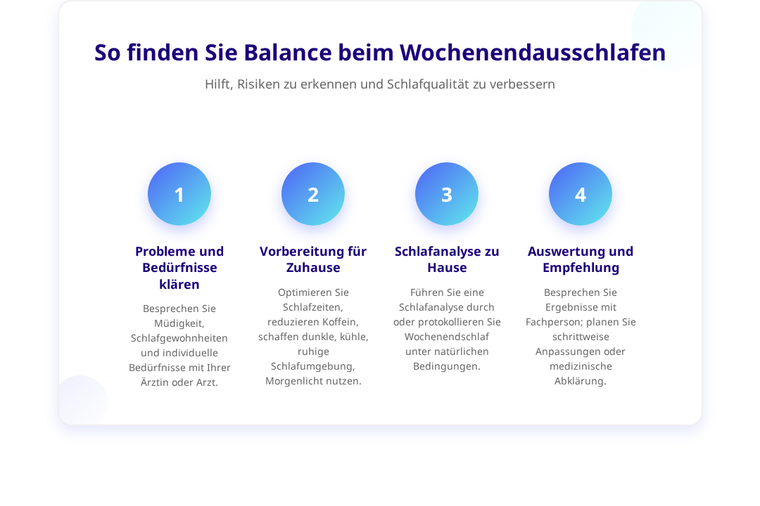 - Individuelle Schlafbedürfnisse sollten bei der Planung des Wochenendschlafs berücksichtigt werden