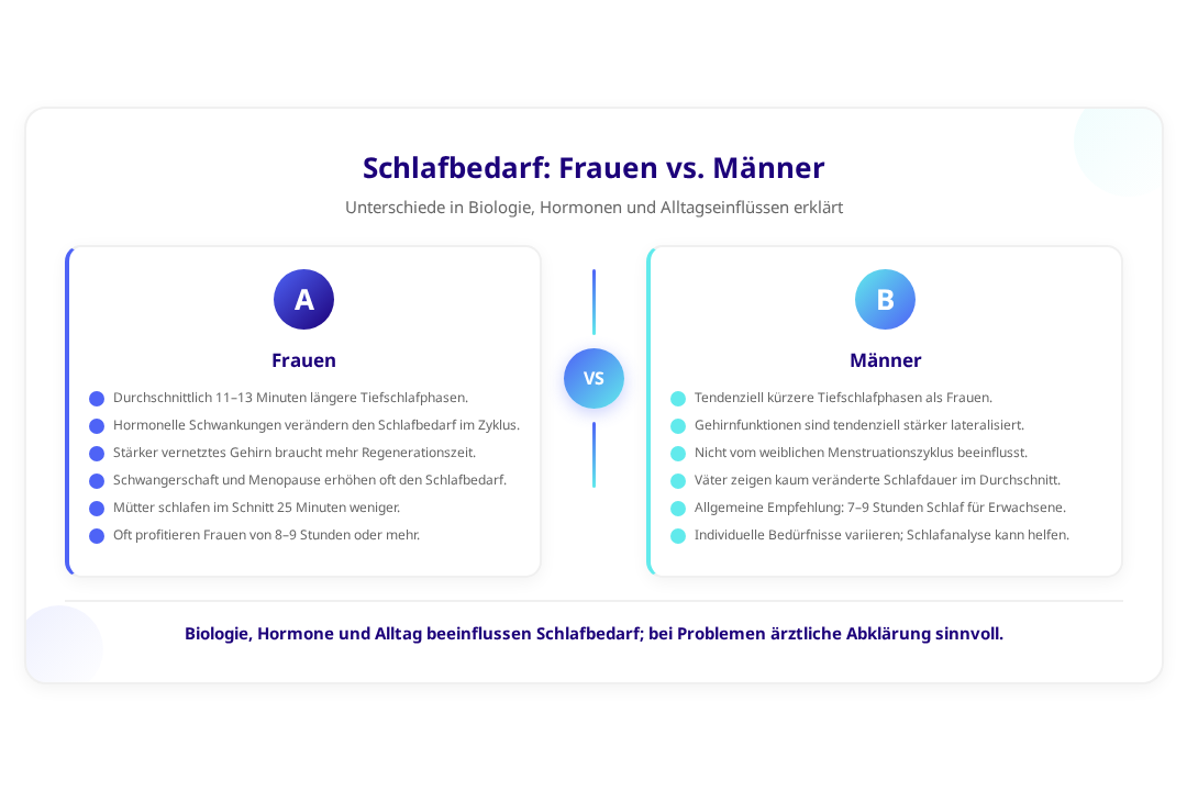 Viele Frauen berichten, dass sie sich trotz ausreichender Schlafzeit oft müder fühlen als Männer oder dass sich ihr Schlafbedürfnis im Verlauf ihres Zyklus verändert. Diese Beobachtungen sind mehr als nur subjektive Eindrücke – sie spiegeln messbare Unterschiede wider, die in der Schlafforschung immer besser verstanden werden.