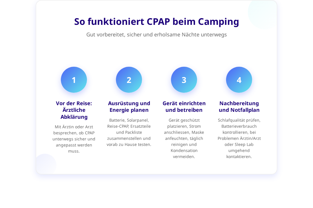 • Bei anhaltenden Schlafproblemen trotz korrekter CPAP-Nutzung während des Campings