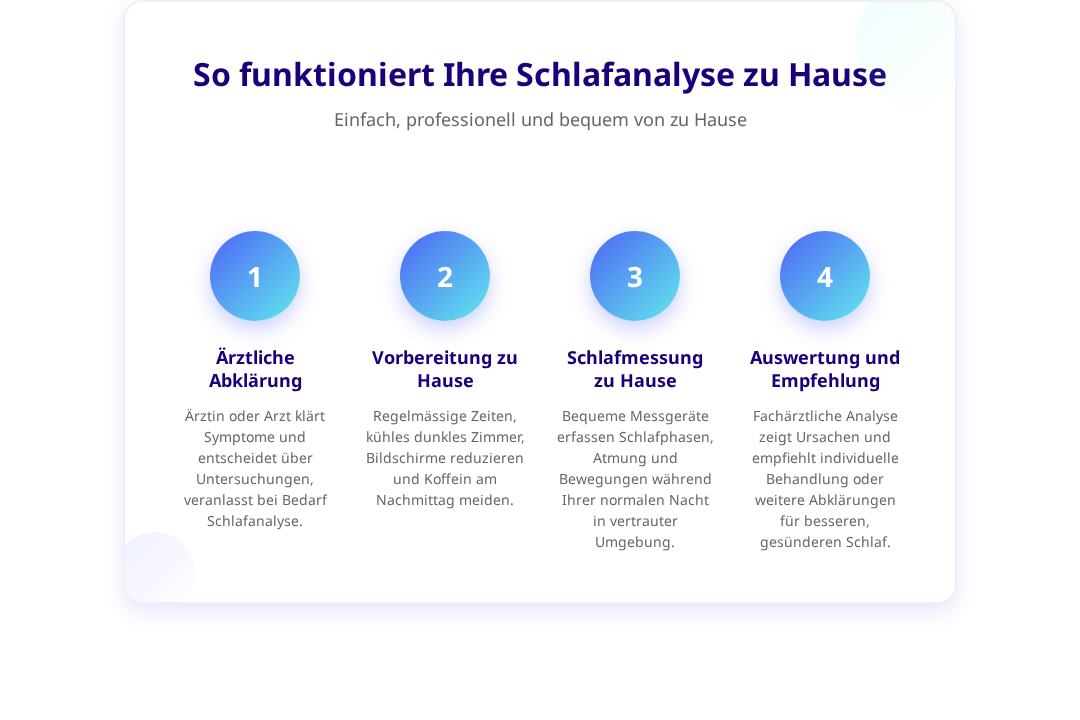 Die gute Nachricht ist, dass heute viele Schlafuntersuchungen bequem von zu Hause aus durchgeführt werden können. Dies macht die Diagnostik zugänglicher und ermöglicht eine natürlichere Schlafumgebung während der Messung. Fachärztliche Auswertungen können dann konkrete Behandlungsempfehlungen geben, die auf die individuellen Bedürfnisse zugeschnitten sind.