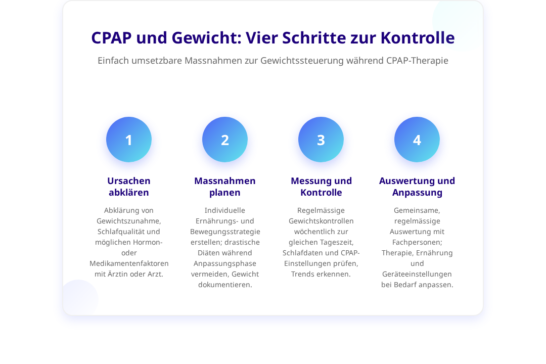 - Drastische Diäten sollten während der CPAP-Anpassungsphase vermieden werden, da sie den Anpassungsprozess stören können