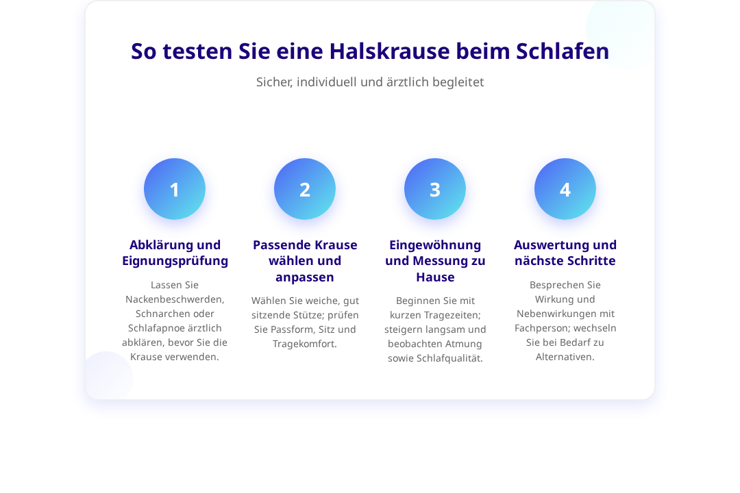 „Eine weiche Halskrause kann bei bestimmten Schlafproblemen durchaus hilfreich sein, sollte aber niemals als Dauerlösung betrachtet werden. Wichtig ist die individuelle Anpassung und die Beobachtung der Körperreaktionen.“