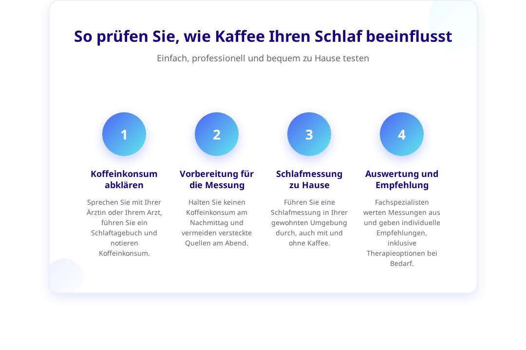 Wenn Schlafprobleme trotz Verzicht auf spätes Koffein über mehrere Wochen bestehen, Sie tagsüber häufig müde sind oder eine starke Koffeinabhängigkeit entwickelt haben, ist eine professionelle Schlafanalyse empfehlenswert.