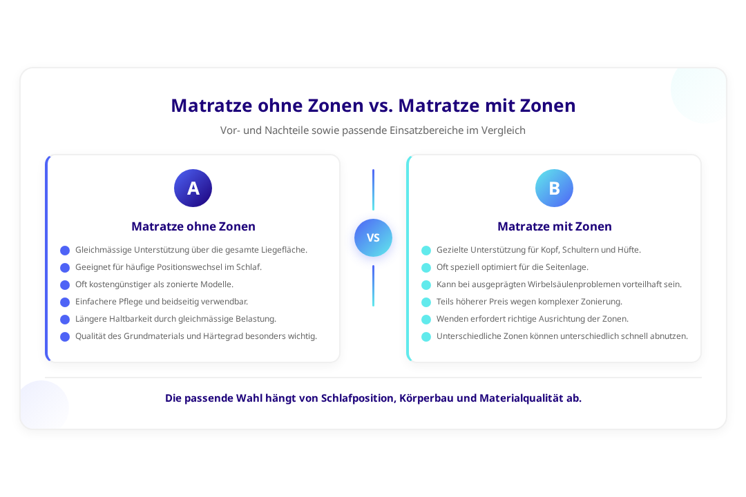 Wie lange halten Matratzen ohne Zonen im Vergleich zu Zonenmatratzen?