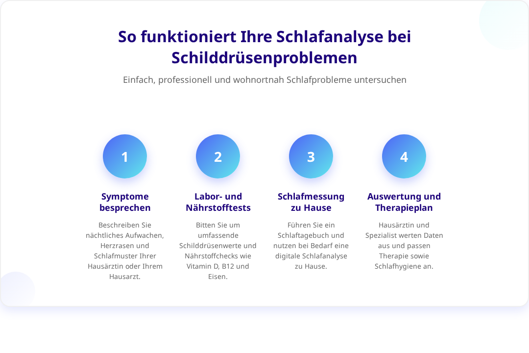 Wenn Sie den Verdacht haben, dass Ihre Schilddrüse Ihren Schlaf beeinflusst, empfiehlt sich folgendes Vorgehen: