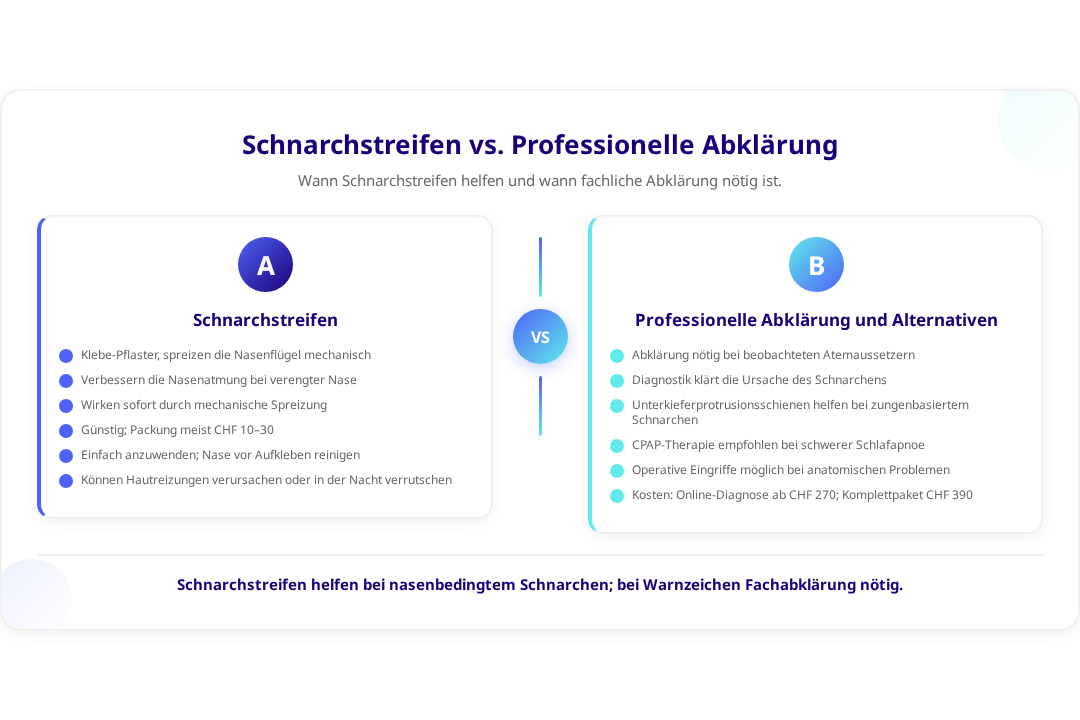 - Schnarchstreifen ersetzen keine ärztliche Abklärung bei schwerem Schnarchen oder Atemaussetzern
