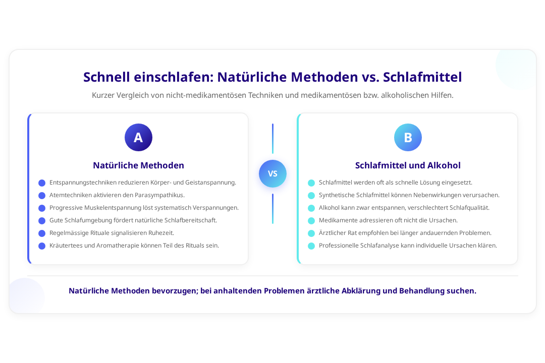Ein Arztbesuch ist ratsam, wenn Einschlafprobleme länger als 4 Wochen bestehen, die Tagesmüdigkeit den Alltag beeinträchtigt oder zusätzliche Symptome wie Atempausen auftreten. Eine professionelle Schlafanalyse kann die genauen Ursachen klären.