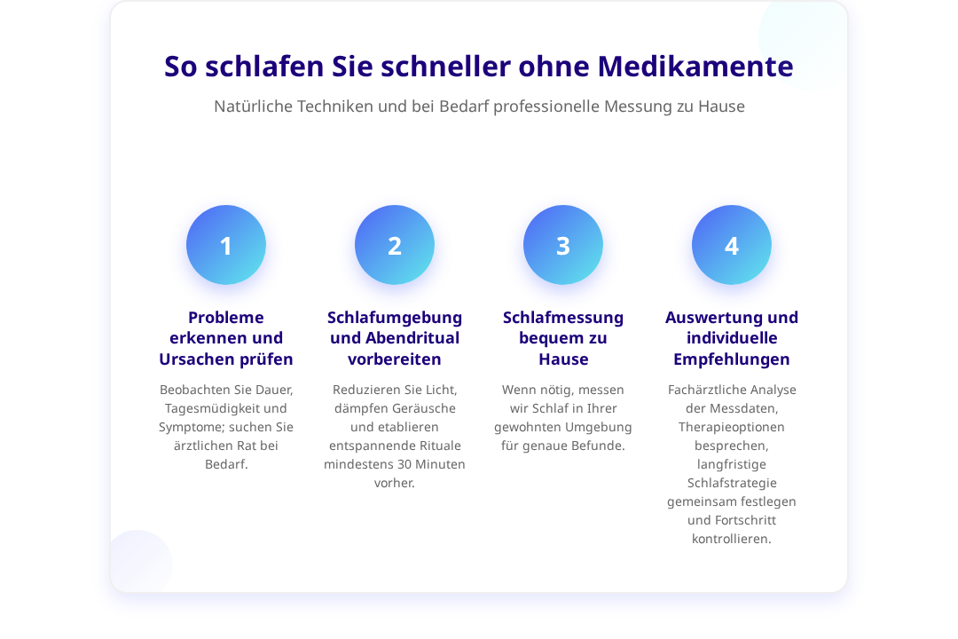 - Bei anhaltenden Problemen ist eine professionelle Schlafanalyse sinnvoll