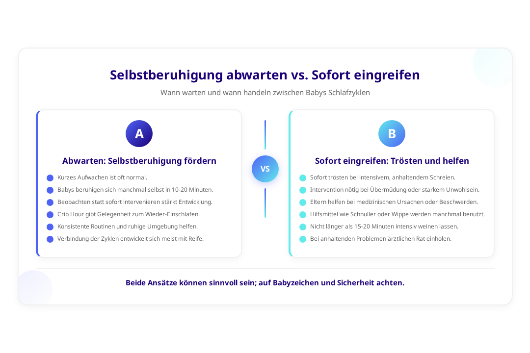 • Kurzes Aufwachen zwischen Zyklen ist normal und erfordert nicht immer elterliche Hilfe