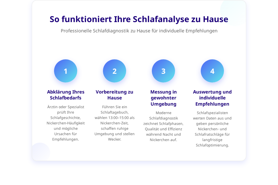 Eine professionelle Schlafanalyse kann dabei helfen, die optimale Balance zwischen Nacht- und Tagschlaf zu finden. Moderne Diagnoseverfahren messen nicht nur die Schlafdauer, sondern auch die Schlafqualität und -struktur. Diese Daten ermöglichen es, individuelle Empfehlungen für Nickerchen und Schlafhygiene zu entwickeln.