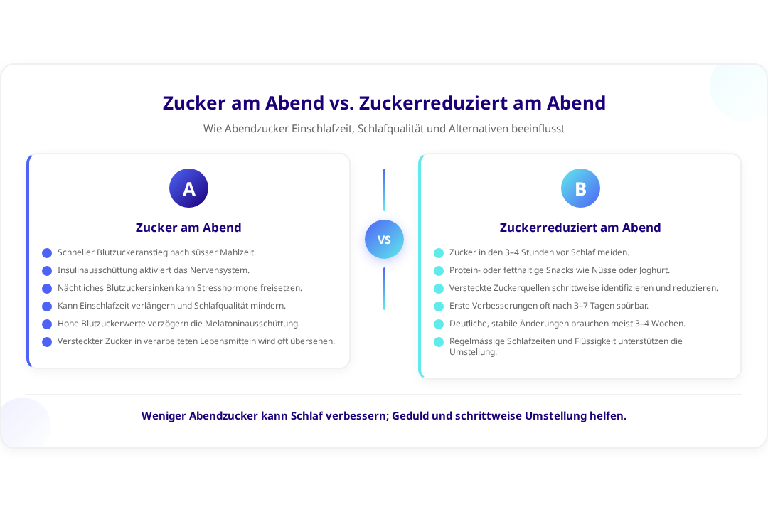Für Menschen, die vermuten, dass ihre Ernährung – insbesondere der Zuckerkonsum – ihren Schlaf beeinträchtigt, bietet unser umfassender Schlafratgeber zusätzliche wertvolle Informationen. Die Kombination aus professioneller Analyse und praktischen Alltagstipps hilft dabei, nachhaltige Verbesserungen der Schlafqualität zu erreichen.